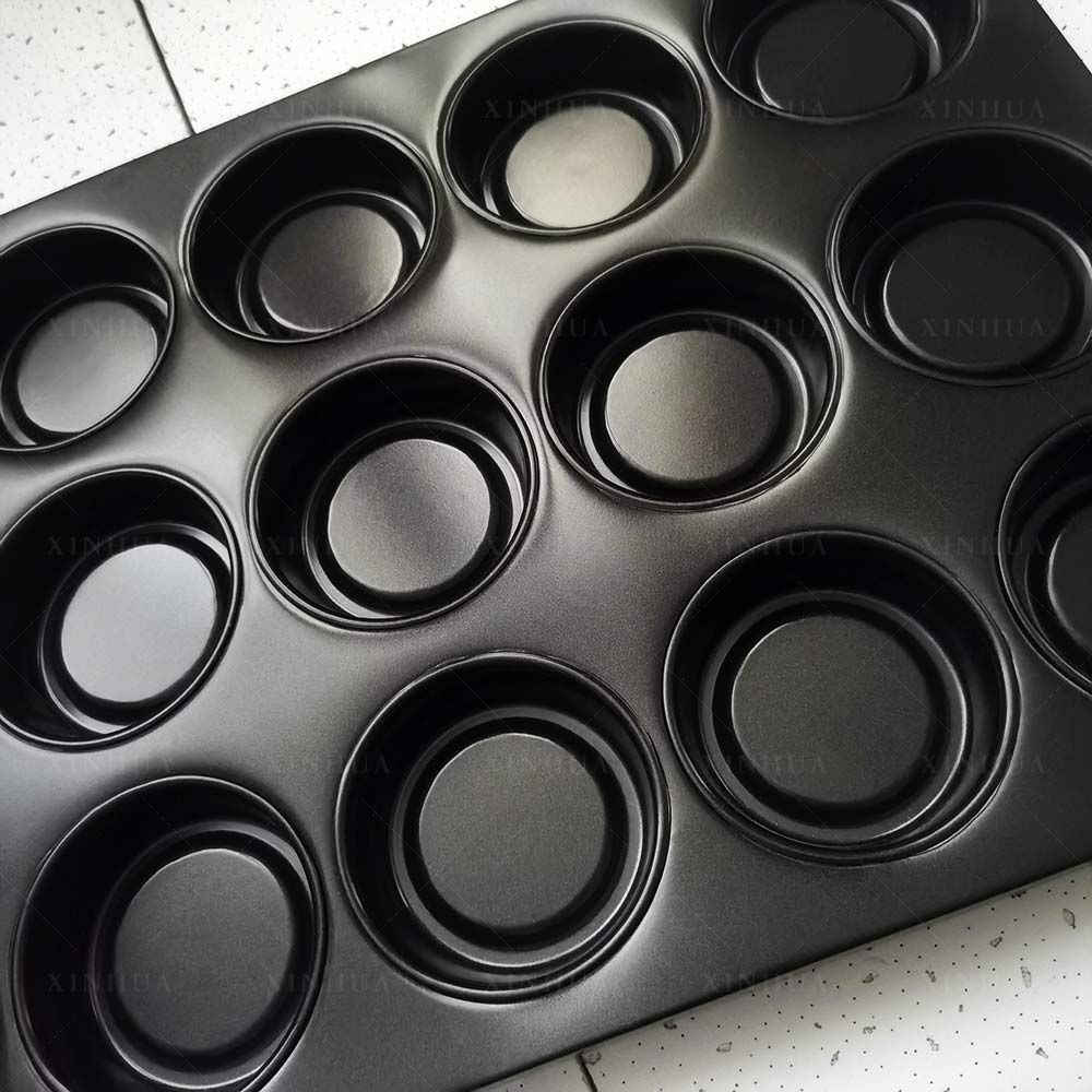 • ROUND EGG TART CAKE BAKING TRAY Surface non stick coated treatment, non stick, heat resistant, corrosion resistant, smooth, easy for demoulding and cleaning, good wear resistance.