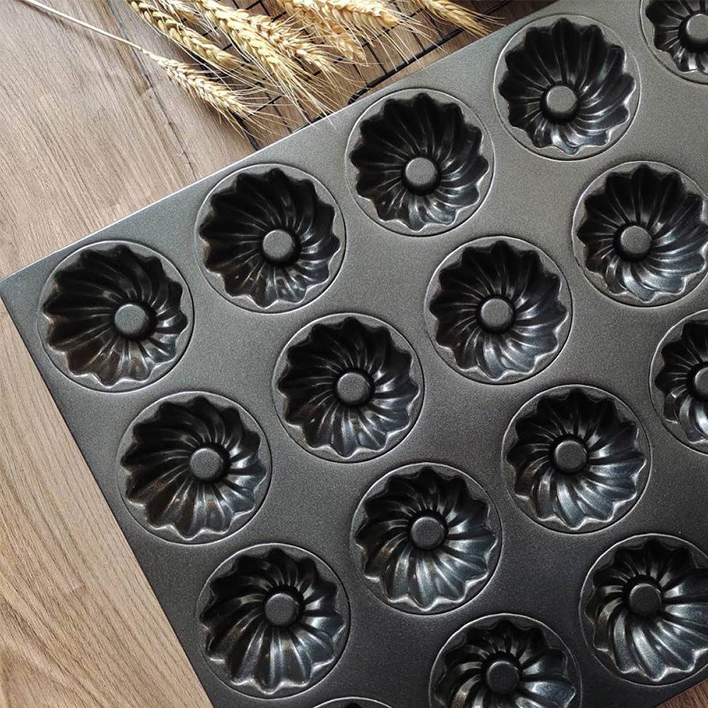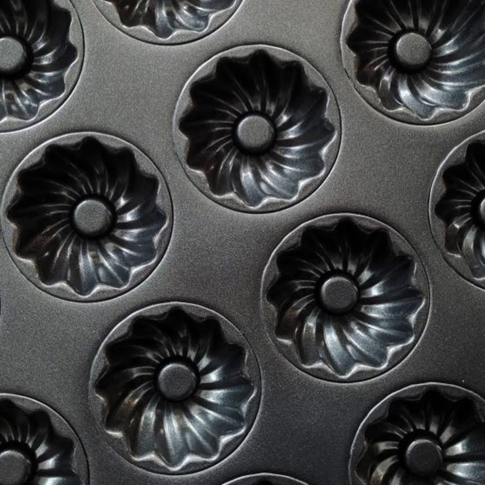 According to the customer's needs, we can customize Flower type customized baking trays whirlwind shaped cake pan of different materials.Stainless steel is not easy to rust and easy to clean.Aluminum has good thermal conductivity, the product is heated evenly, and the draw pattern effect is good. Aluminum steel have beautiful appearance, suitable for bread、cake baking tray.