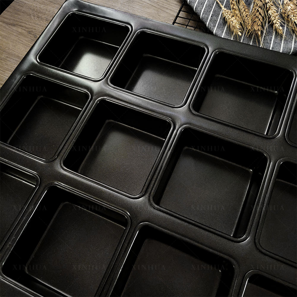 2. Square muffin moulds baking tray for commercial use in bakery, suitable for food-factory production.